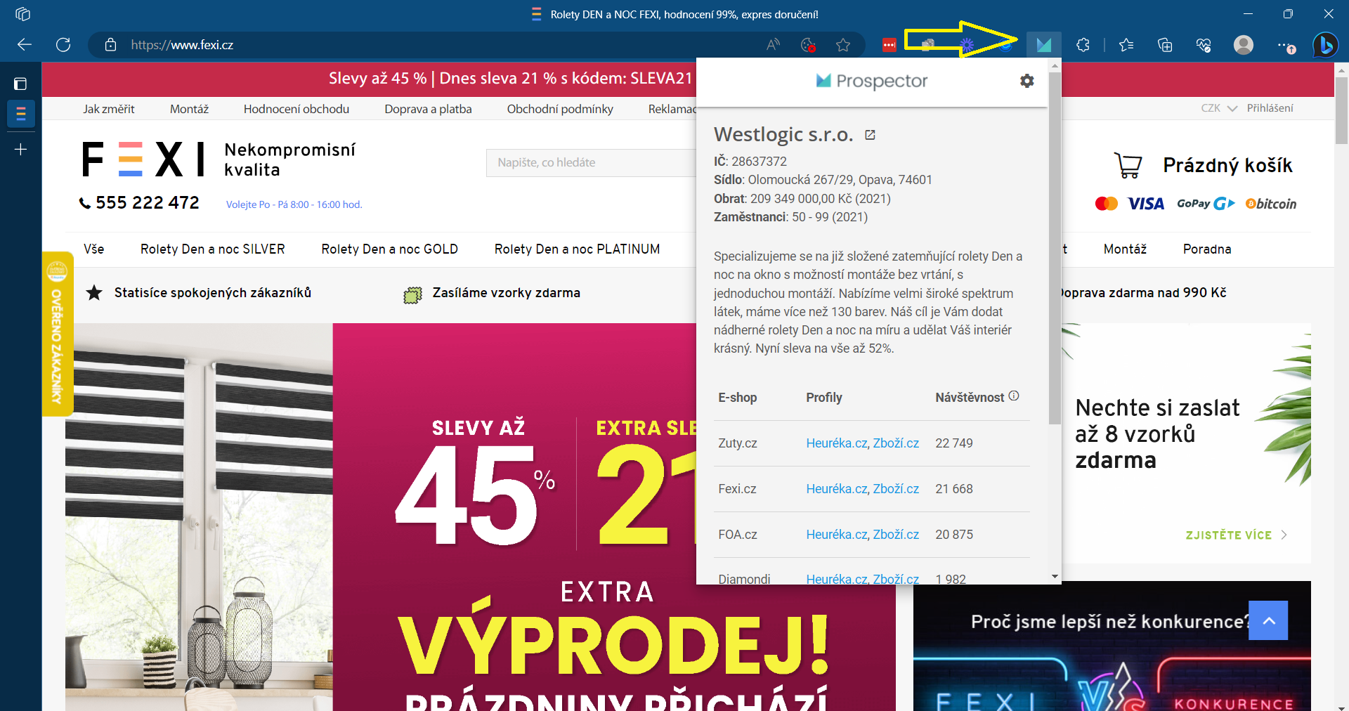 Hotovo! Nyní můžete využívat rozšíření na zobrazovaných webech.