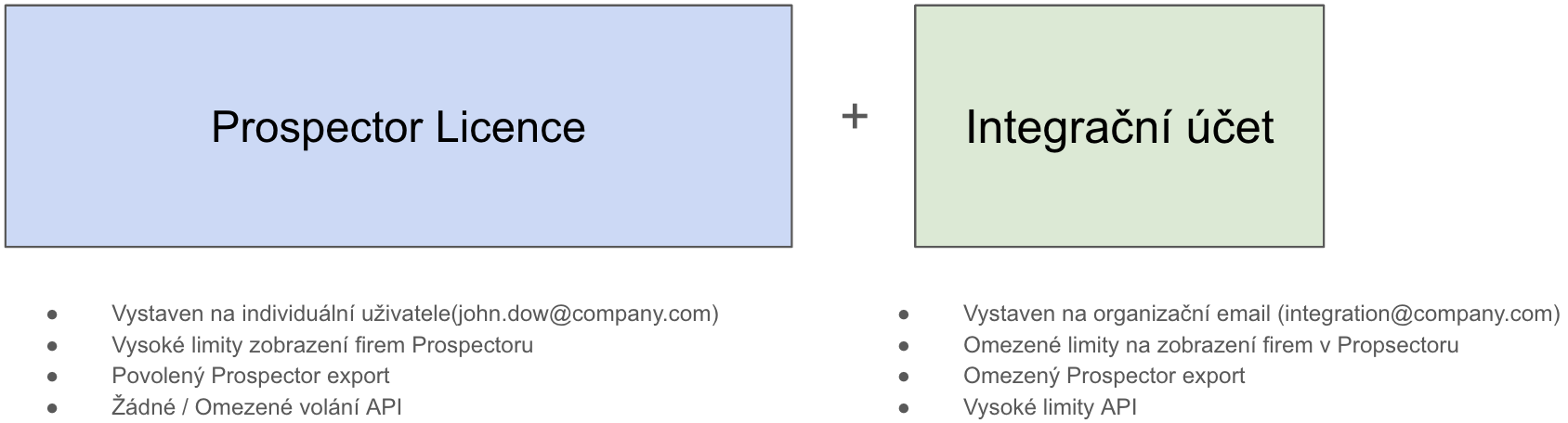 Integrační (servisní) účet je Prospector účet vystavený na organizaci, který má nastavené vyšší API limity.