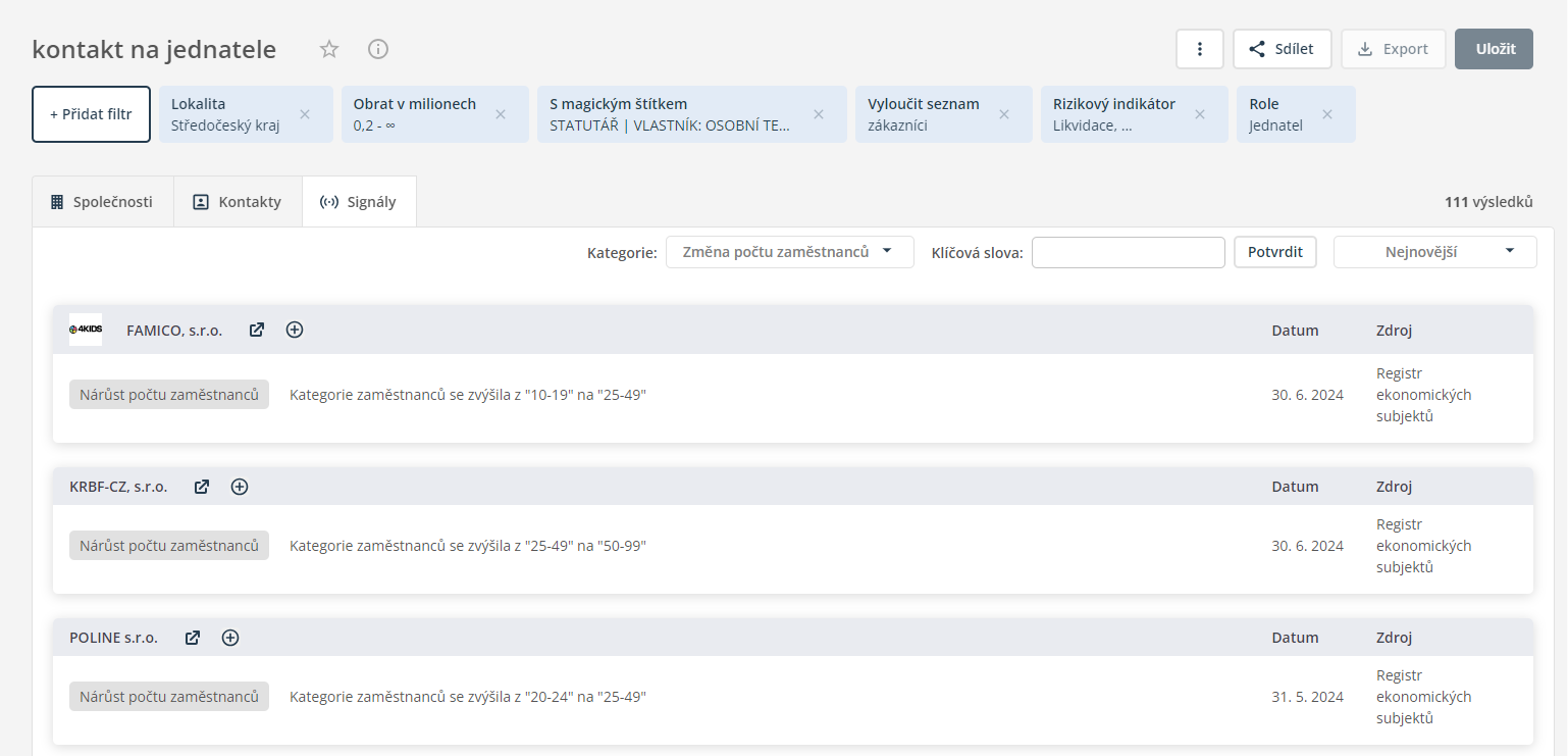 Díky Firemním signálům Vám již nic neunikne. Nová funkce v Prospectoru vám umožní sledovat změny u společností a reagovat na obchodní příležitosti dříve než ostatní.