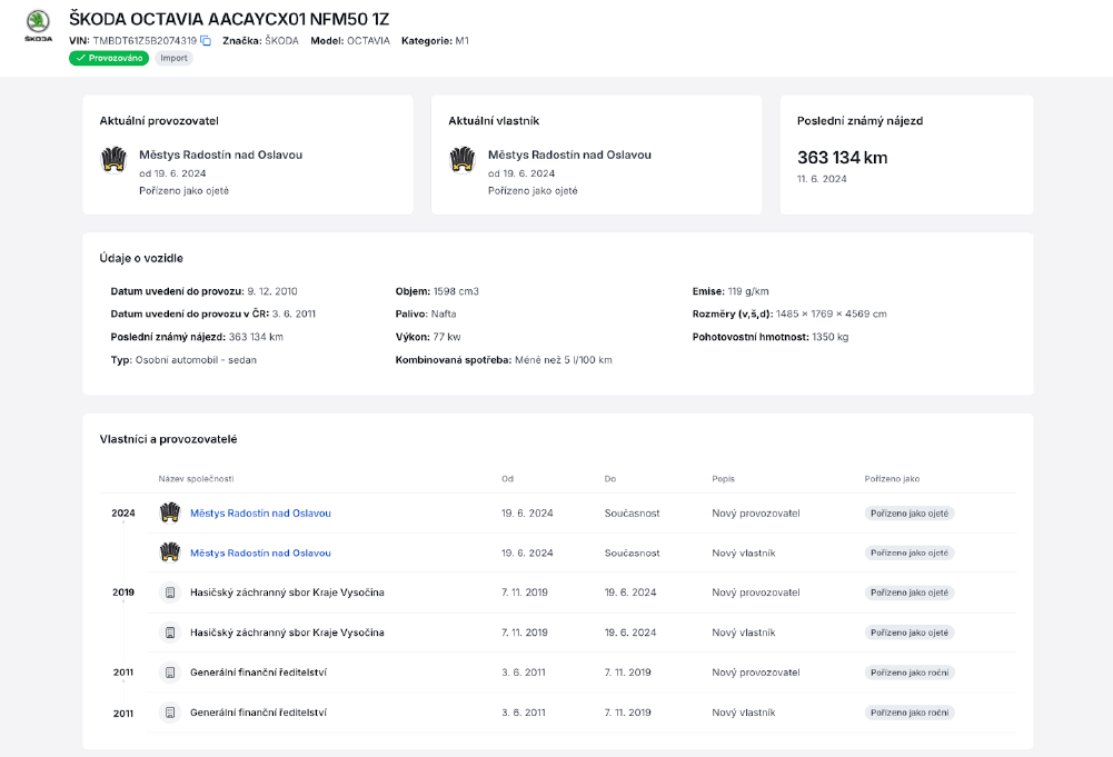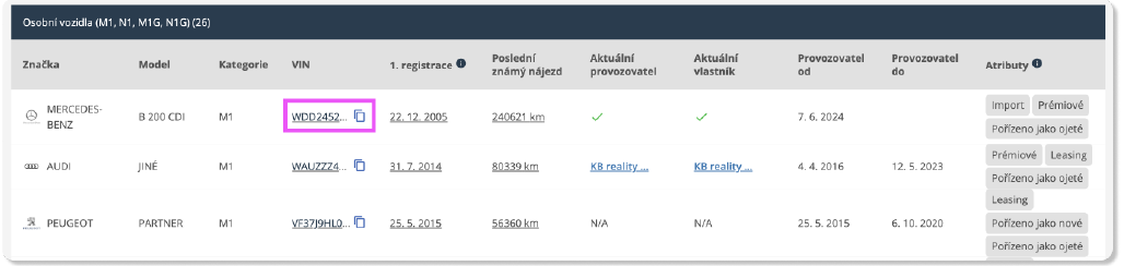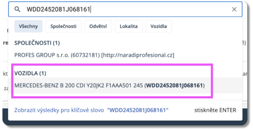 - kliknutím na VIN kód v seznamu vozidel na profilu firmy