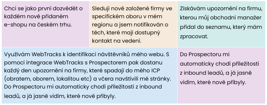 V Prospectoru si nyní můžete nastavit přesně zaměřené automatické upozornění na klíčových segmentech tak, abyste mohli okamžitě reagovat na nové obchodní příležitosti, sledovat aktivity konkurence nebo monitorovat důležité změny u klíčových klientů.