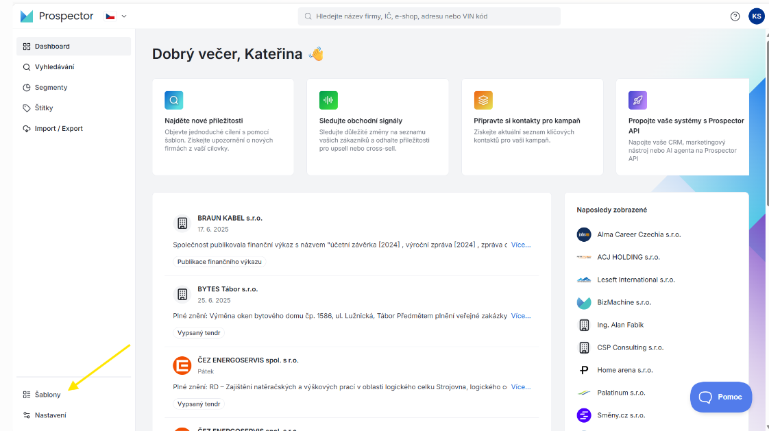 Nový kabát Prospectoru otevřete použitím tohoto linku: https://prospector.bizmachine.com/v3/cs/datasets/cz