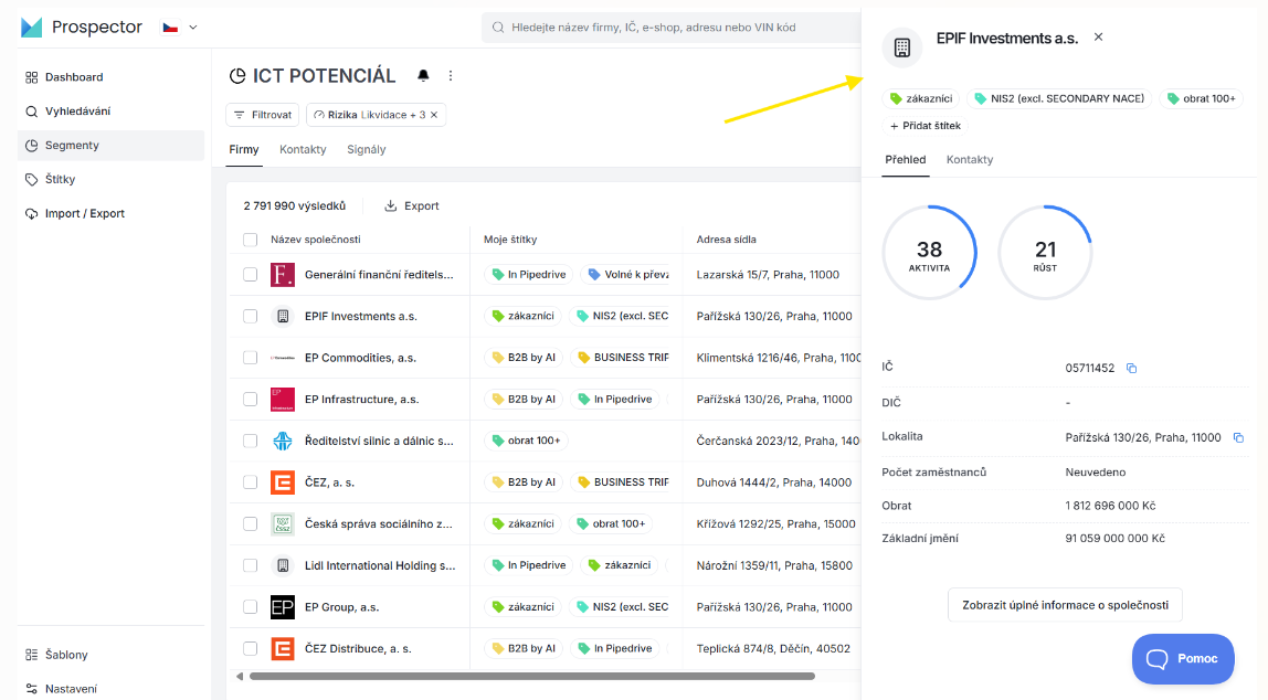 - Mini profil firmy, abyste jednodušeji mohli projít seznamy leadů